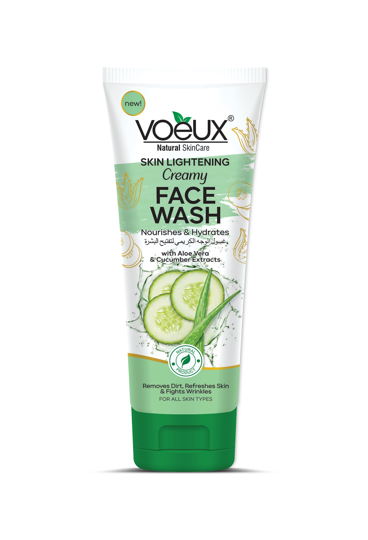 VOEUX Skin Lightening Cream based Face Wash is a natural cleanser that removes dirt and impurities while hydrating the skin. Cucumber cools and smooths while Aloe Vera hydrates and nourishes, leaving your skin soft, supple and younger every day. It’s botanically improved formula lightens skin complexion, helps retain moisture while tightening and minimizing your pores.