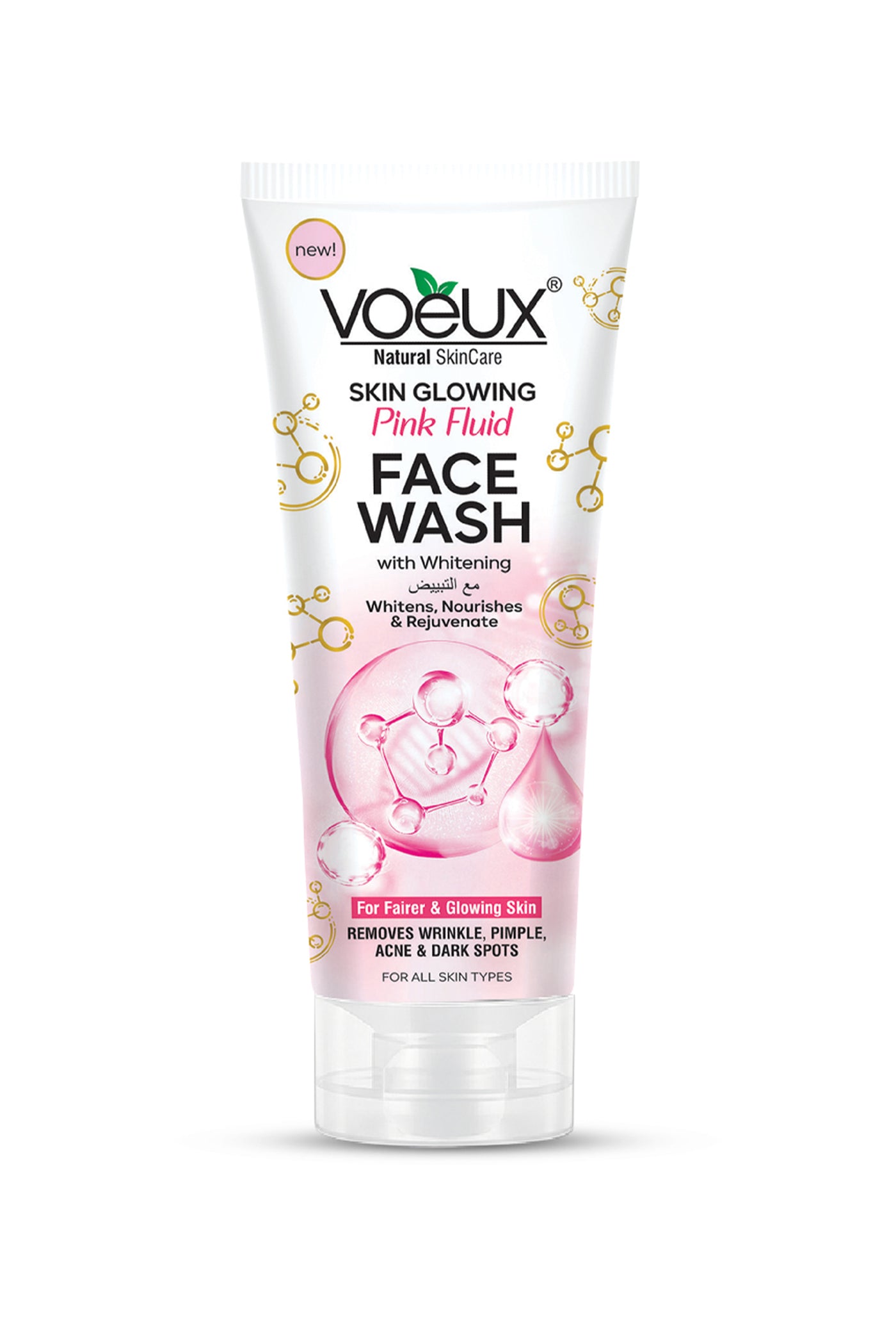 VOEUX Skin Glowing Pink Fluid Face Wash is an advance and unique formula specially formulated with makeup base, enriched with natural ingredients which deeply nourishes the skin and gives instant pinkish glow on your face. It helps to remove acne, pimple, wrinkles, and dark spots. It will also moisturize your skin and make it even-toned.